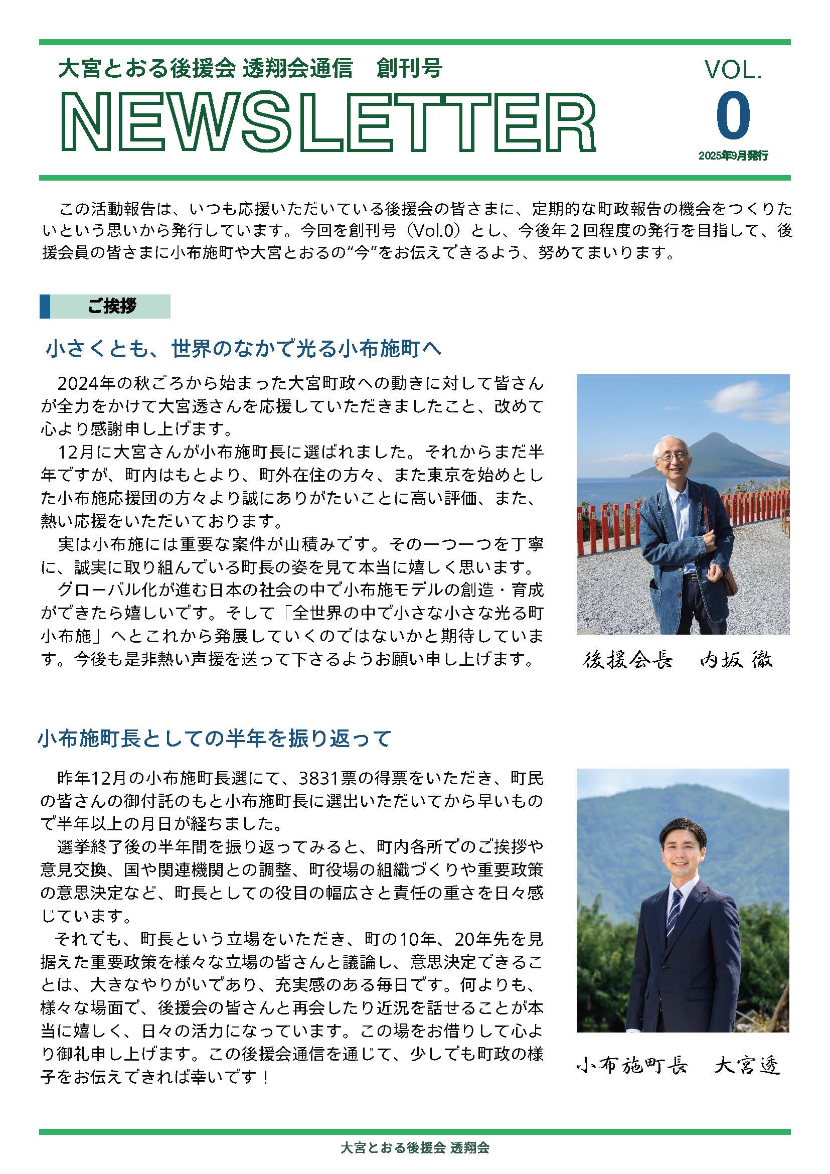 町民の皆さんと共に創る町政の実現に向け、
